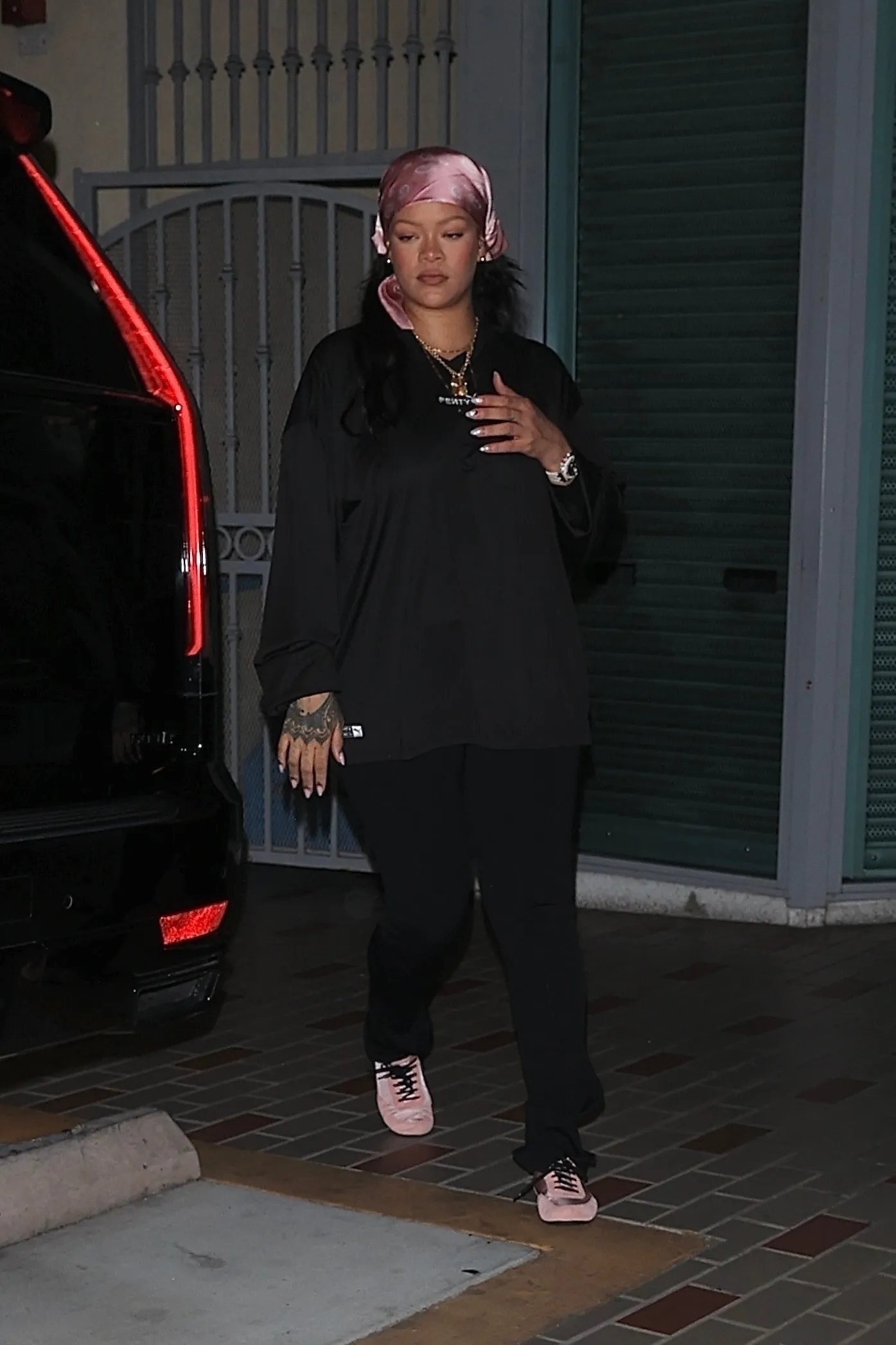 Rihanna je nosila široku crnu košulju dugih rukava i crne trenerke, uz patike Puma u nijansi slatkiša i sjajnu ružičastu torbicu banana kroja. Ležerno, simpatično i savršeno za igru u bazenu s lopticama – uz nezaobilazne Rihannine modne detalje.