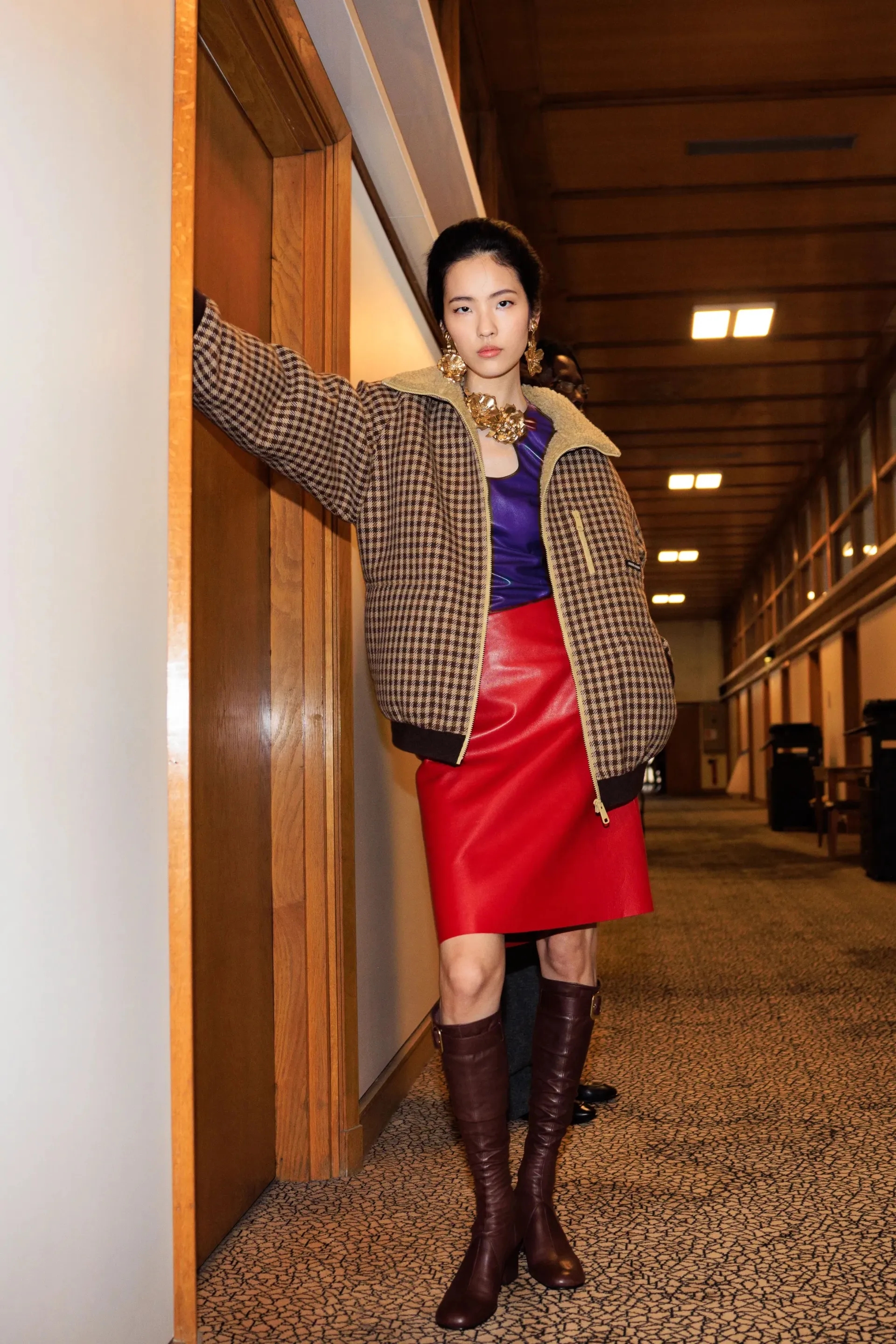 Koža i jesen su modni klasik koji nikad ne izlazi iz trenda. Na pisti Miu Miu čizme s kvadratnim vrhom bile su savršen dodatak kompletnom kožnom izdanju – smjelo, pomalo buntovno, ali iznenađujuće skladno.
