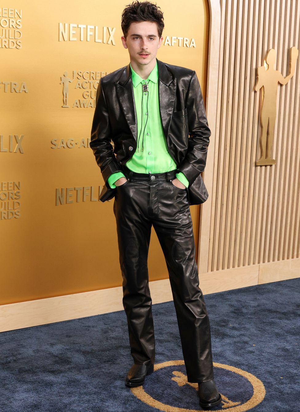 Najbolji outfit 2025.: Chrome Hearts kožno odijelo, bolo kravata i acid green košulja na SAG Awards.