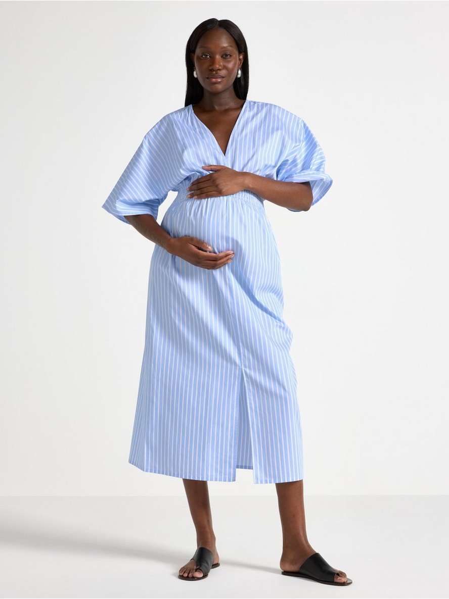 Prije nego posjetite prodavnicu koja nudi kolekciju za trudnice, pregledajte svoj garderober jer ćete u njemu možda pronaći haljinu koju ćete nositi barem u prvim mjesecima trudnoće. Ukoliko ipak ne pronađete ono što vam odgovara, kupovina rastezljive haljine je nepogrešiva investicija. Midi haljine A kroja, haljine na preklop ili one maksi dužine različitih dezena su takođe odličan izbor. Osim što su prijatne i prigodne za različite prilike, možete ih nositi i nakon trudnoće.