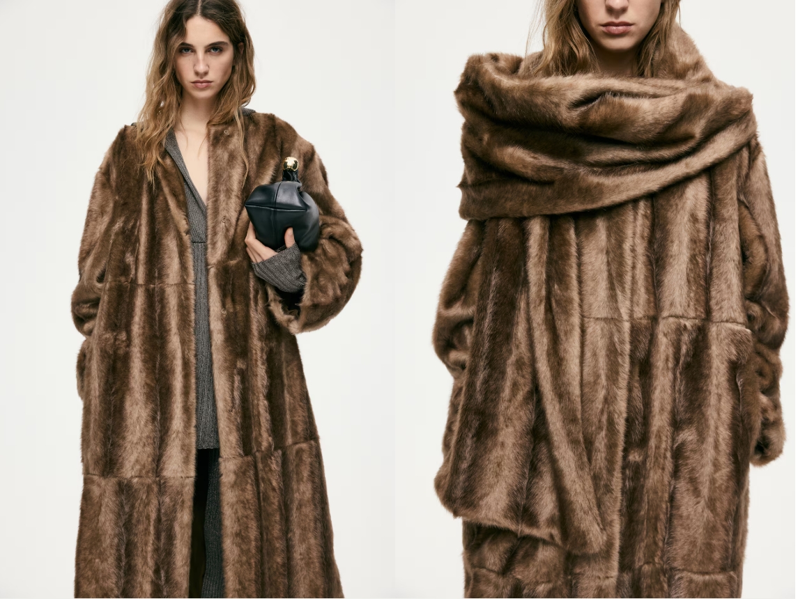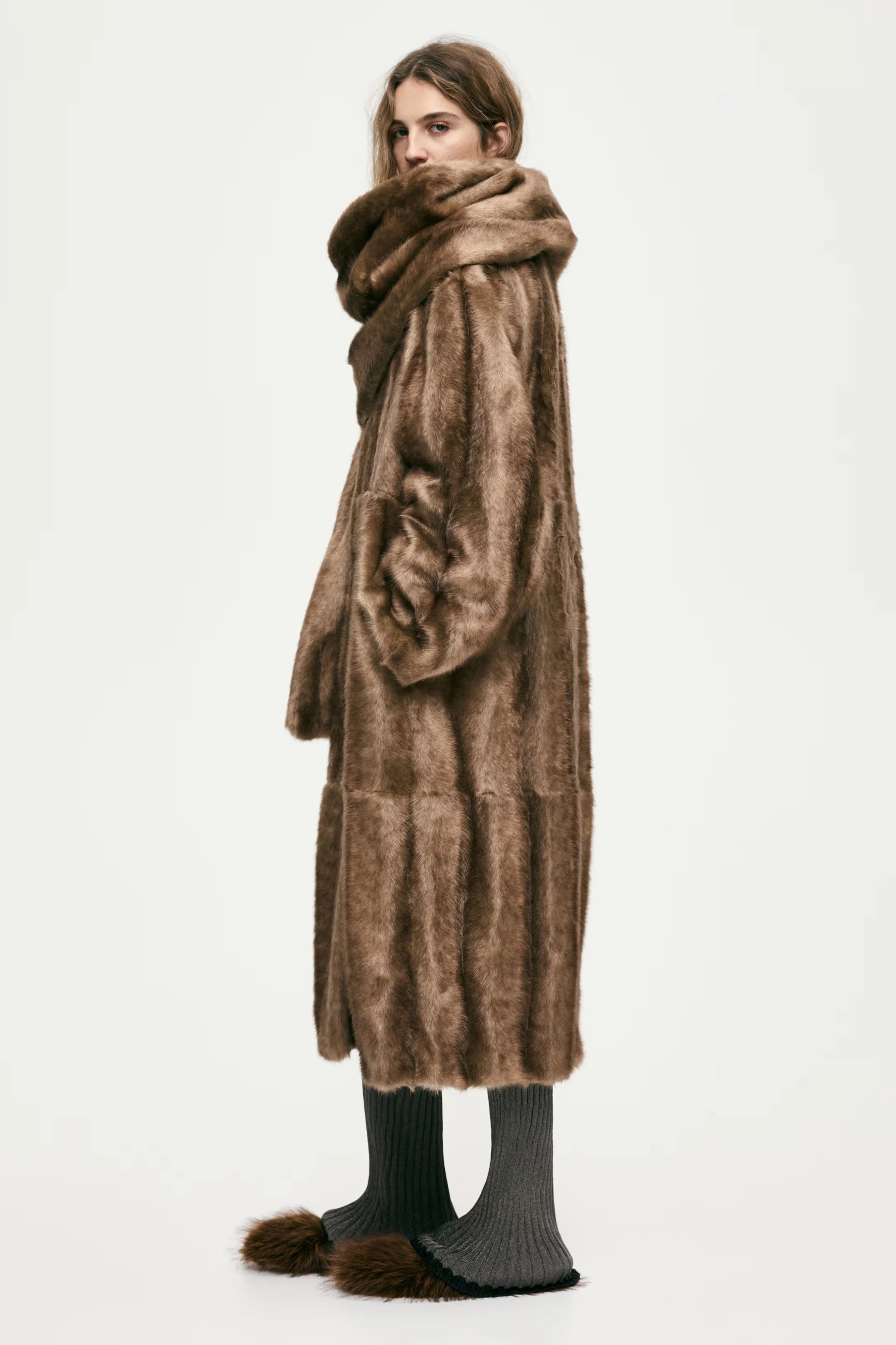Riječ je o dugoj bundi s integrisanim šalom, komadu koji izgleda luksuzno i moderno, a bez puno truda podiže cijeli outfit.
