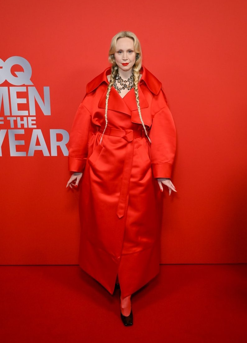 Još jedna tipična nijansa — crvena — zablistala je zahvaljujući Gwendoline Christie na dodjeli GQ Men of the Year nagrada: njen satenski, upečatljivi crveni kaput potpisuje Givenchy.