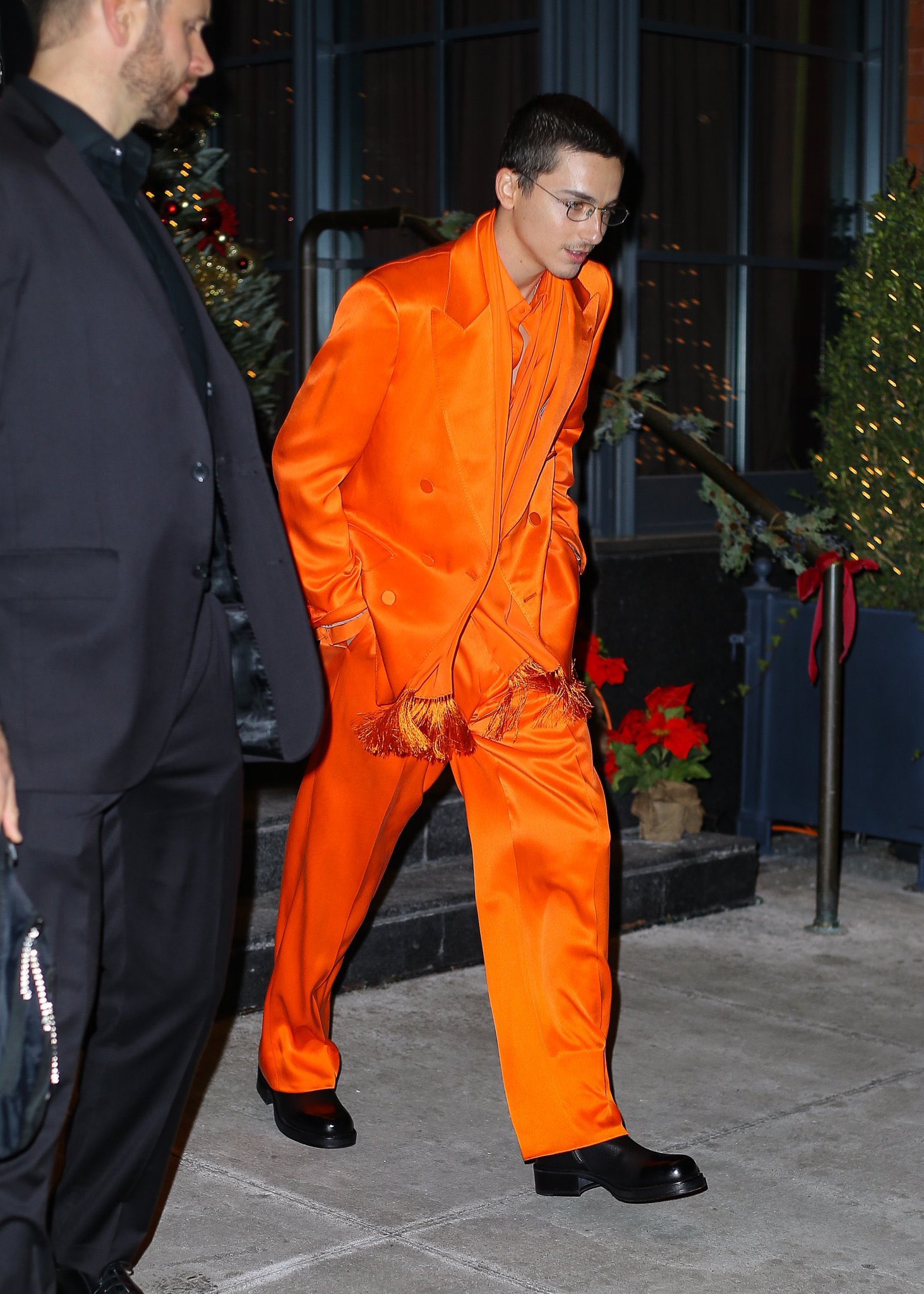 Stilist Taylor McNeill dodao je finalni touch: naočale Chrome Hearts, dijamantski privjesak Panthère de Cartier i custom made narandžasti sat Urban Jurgensen.