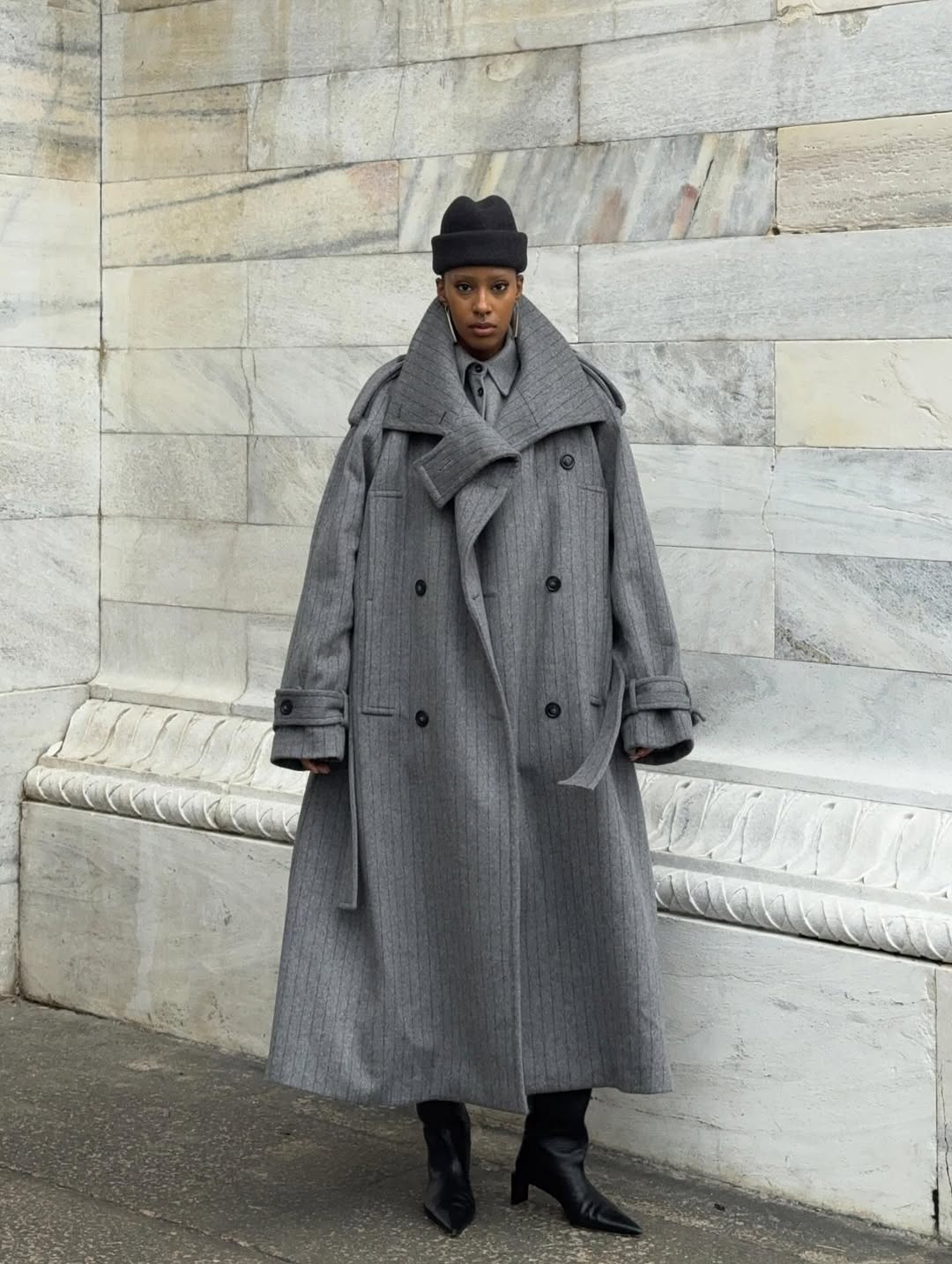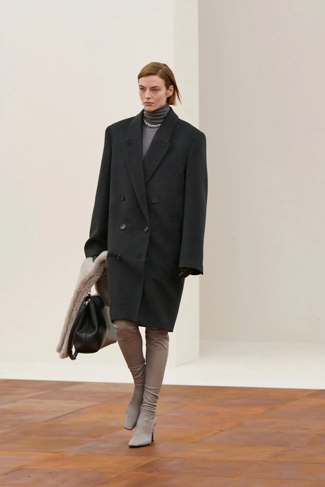 Preporučuju se klasične nijanse poput crne, tamnoplave, grafitne, čokoladno smeđe ili neutralne boje poput bež, kamel i krem. Kroj je ključan – blago oversize omogućava slojevito oblačenje i opušten izgled, dok uži kroj daje elegantan i poliran stil. Rukavi trebaju imati odgovarajuću dužinu.
