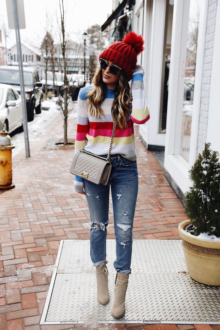 Ukoliko odjećom želite da izrazite nostalgiju za toplim danima, onda su džemperi s prugama u boji duge pravi izbor za vas. Za postizanje ležernog izgleda se preporučuje da ovaj model džempera kombinirate s farmerkama, dok je za poslovni look idealna midi suknja.