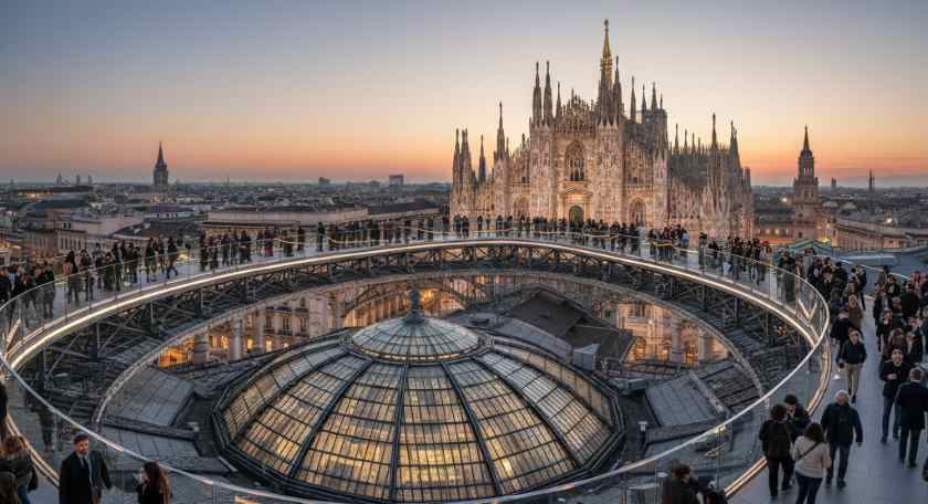 Posebnu draž gradu daje i mogućnost da ga doživite iz drugačije perspektive. Šetnja uzdignutom stazom Highline Milano, koja se proteže iznad krovova galerije, otkriva sasvim novu sliku grada.