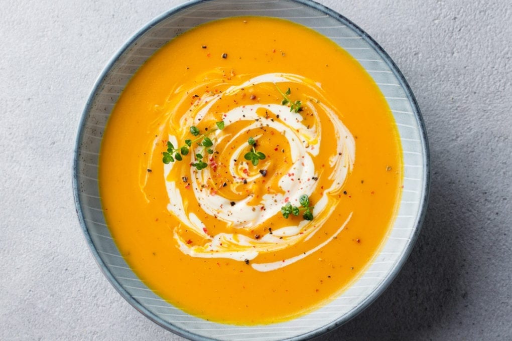 6. Dodajte vrhnje, dobro promiješajte i vratite supu na laganu vatru. Posolite i pobiberite po ukusu, a potom kuvajte još nekoliko minuta.