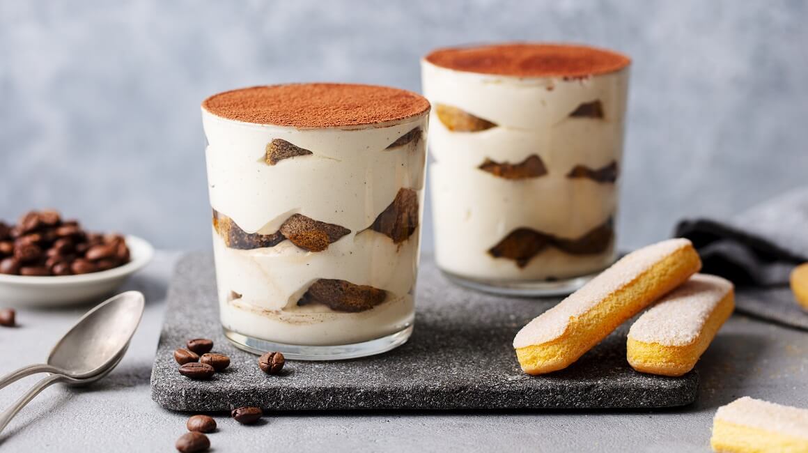 2. Žumanca i šećer pjenasto umutiti, zatim kuhati na pari 3-4 min, neprestano muteći mikserom.Ohladiti pa dodati vaniliju i mascarpone, dobro umutiti mikserom. Na kraju lagano umiješati umućeno slatko vrhnje. Kremu staviti u slastičarsku vrećicu sa okruglim otvorom. Na dno čaša staviti po 1 kašiku ganache, na to piškote namočene u kafu, zatim mascarpone kremu, ganache, piškote namočene u kafu, kremu, ganache i završiti sa kremom. Posuti kakaom i ohladiti prije služenja.
