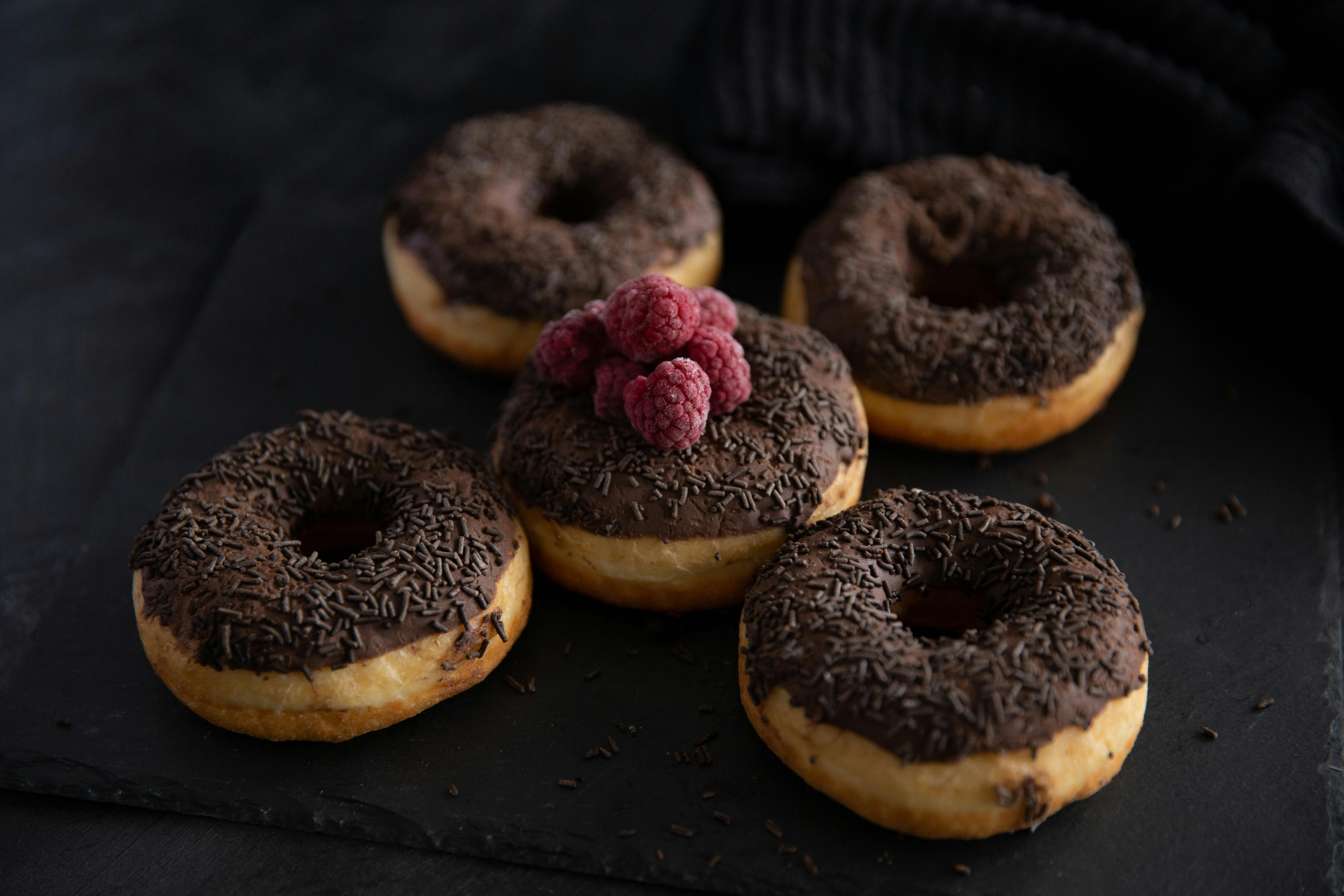 Zamislite savršen trenutak – miris svježe pečenih krofni koji ispunjava kuhinju, dok se bogata čokoladna glazura polako topi na jeziku, a svježe maline dodaju dašak kiselkastog osvježenja.