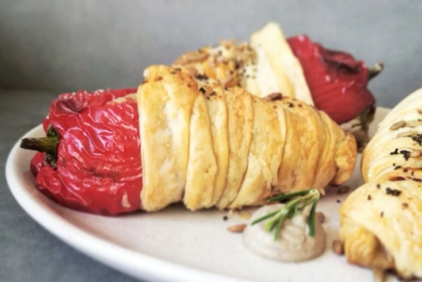 Ove punjene roga paprike u lisnatom tijestu savršeni su za sve koji vole kombinaciju laganog povrća i bogatih okusa, a veganski suncokretov namaz dodatno podiže nutritivnu vrijednost jela