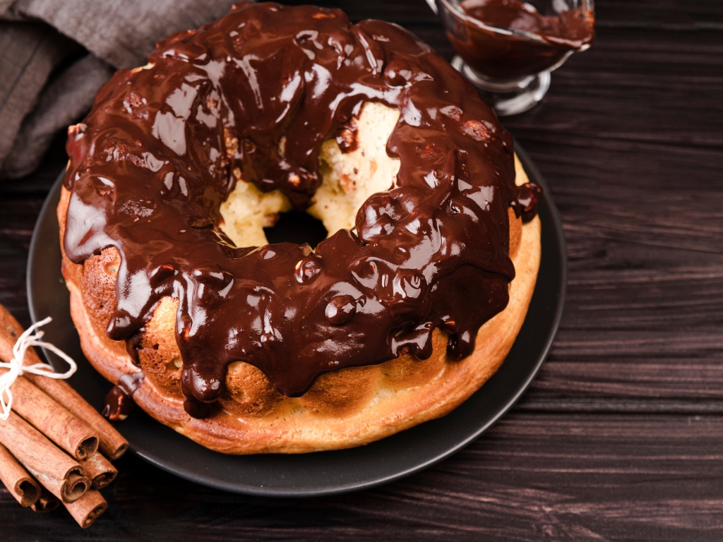 Prelijte kuglof, pustite da se lagano slije niz rubove, a zatim po želji pospite samljevenim bademima, orasima ili bučinim sjemenkama.
