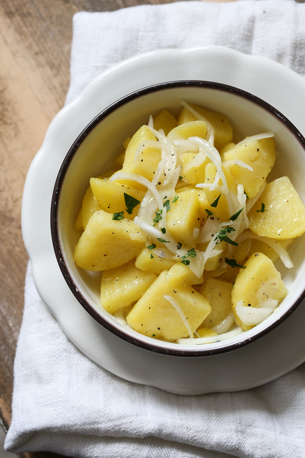 Krompir skuhajte u kori, ogulite i narežite na tanke kriške.