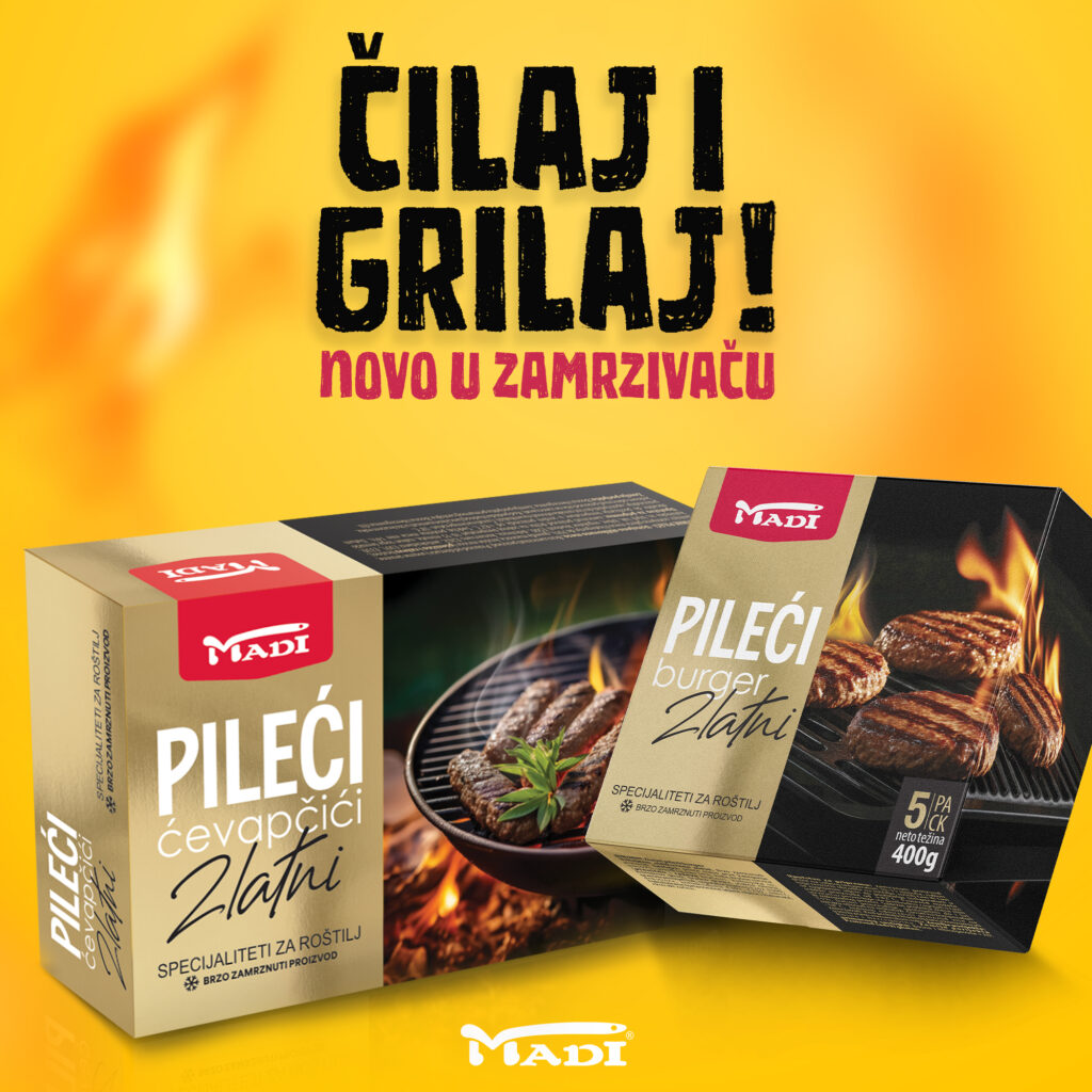 Mesna industrija MADI s ponosom predstavlja svoju najnoviju generaciju roštilj proizvoda – Zlatne pileće ćevapčiće i Zlatne pileće burgere, koje su kreirali stručnjaci s dugogodišnjim iskustvom i strašću prema savršenom ukusu.