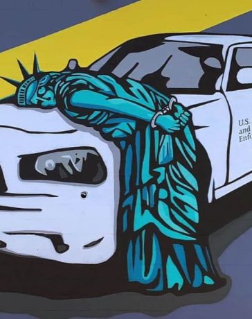 Mural koji prikazuje njujorški Kip slobode, no sada vezanu lisicama te prikovanu za haubu vozila službe za državljanstvo i imigracijsku, osvanuo je u donjem dijelu grada Las Vegasa.
