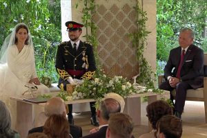 Krunski princ Husein od Jordana i njegova zaručnica Rajwa Al Saif vjenčali su se danas na raskošnom kraljevskom vjenčanju u jordanskom glavnom gradu Ammanu. Prijestolonasljednik i arhitektica, kći saudijskog bogataša, vjenčali su se prema islamskoj ceremoniji u palači Zahran u kojoj su se prije 30 godina vjenčali i prinčevi roditelji, kraljica Rania i kralj Abdullah II. I mladoženjina je svečana uniforma bila nadahnuta onom koju je njegov otac nosio na vjenčanju.