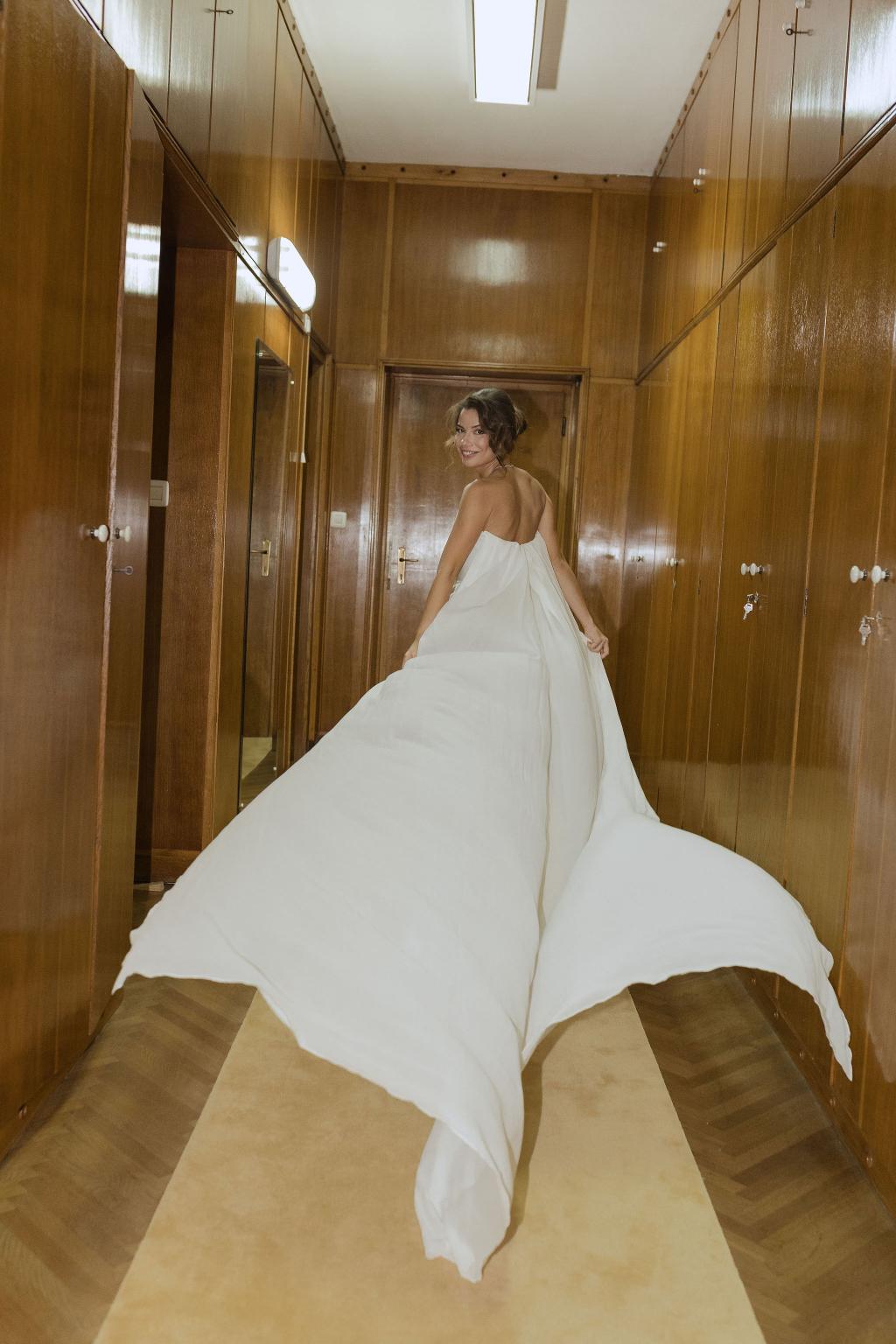 Centralni trenutak svakog vjenčanja bio je, naravno, odabir vjenčanice. Mlada je izabrala jednostavnu kreaciju od satena. Vjenčanica, s naglašenim dekolteom i elegantnim A-linijskim krojem, bila je savršeno utemeljena na klasičnoj eleganciji, ali s daškom moderne sofisticiranosti.