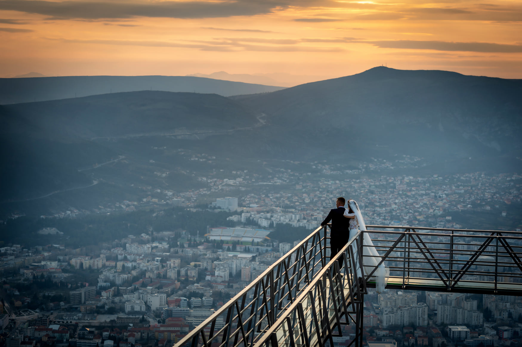 Fortica iznad Mostara pruža panoramski pogled na grad, posebno spektakularan u zalazak sunca. Ako uz to dodate i zip-line za hrabre mladence, dobit ćete ne samo nezaboravno iskustvo nego i originalne, dinamične fotografije.