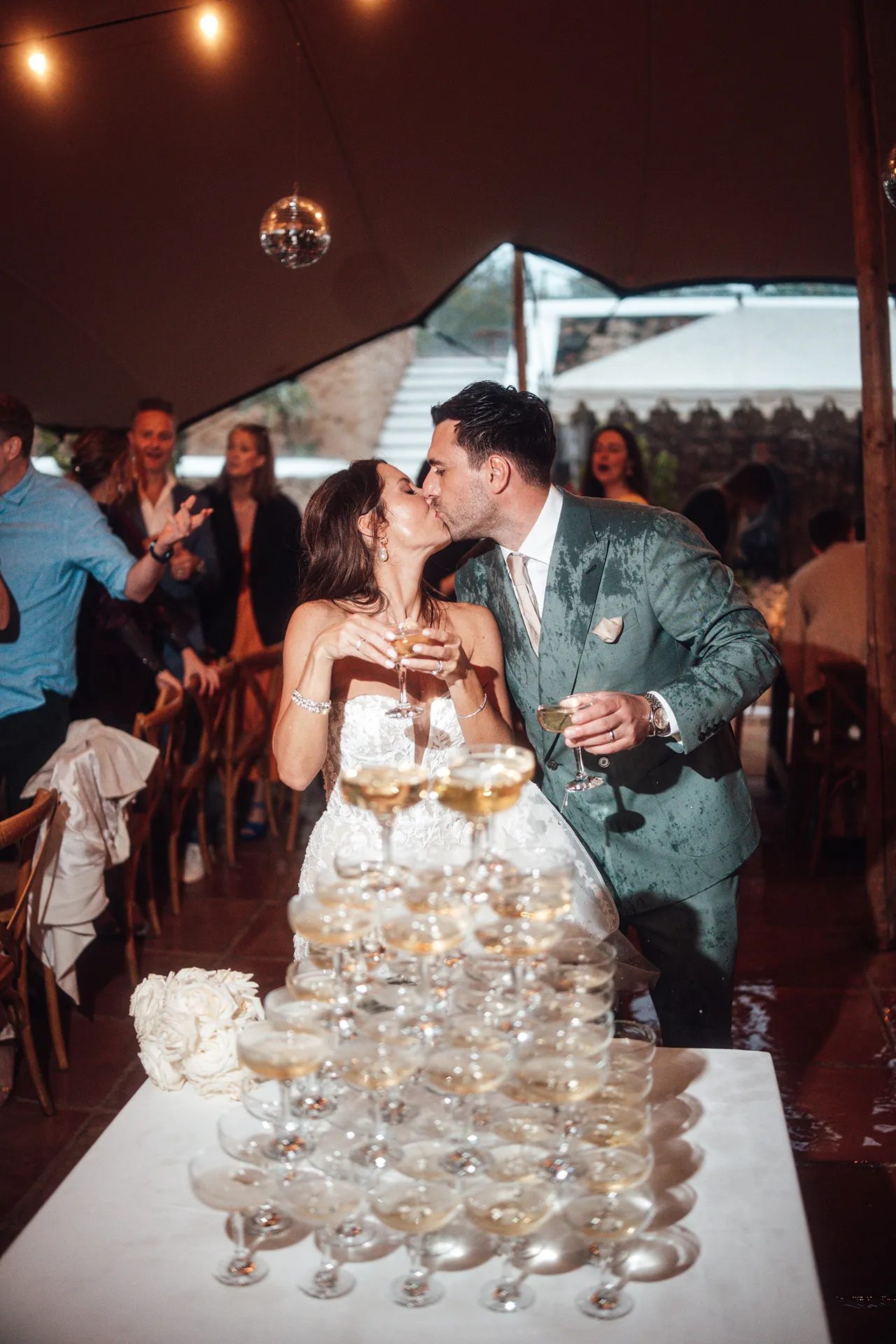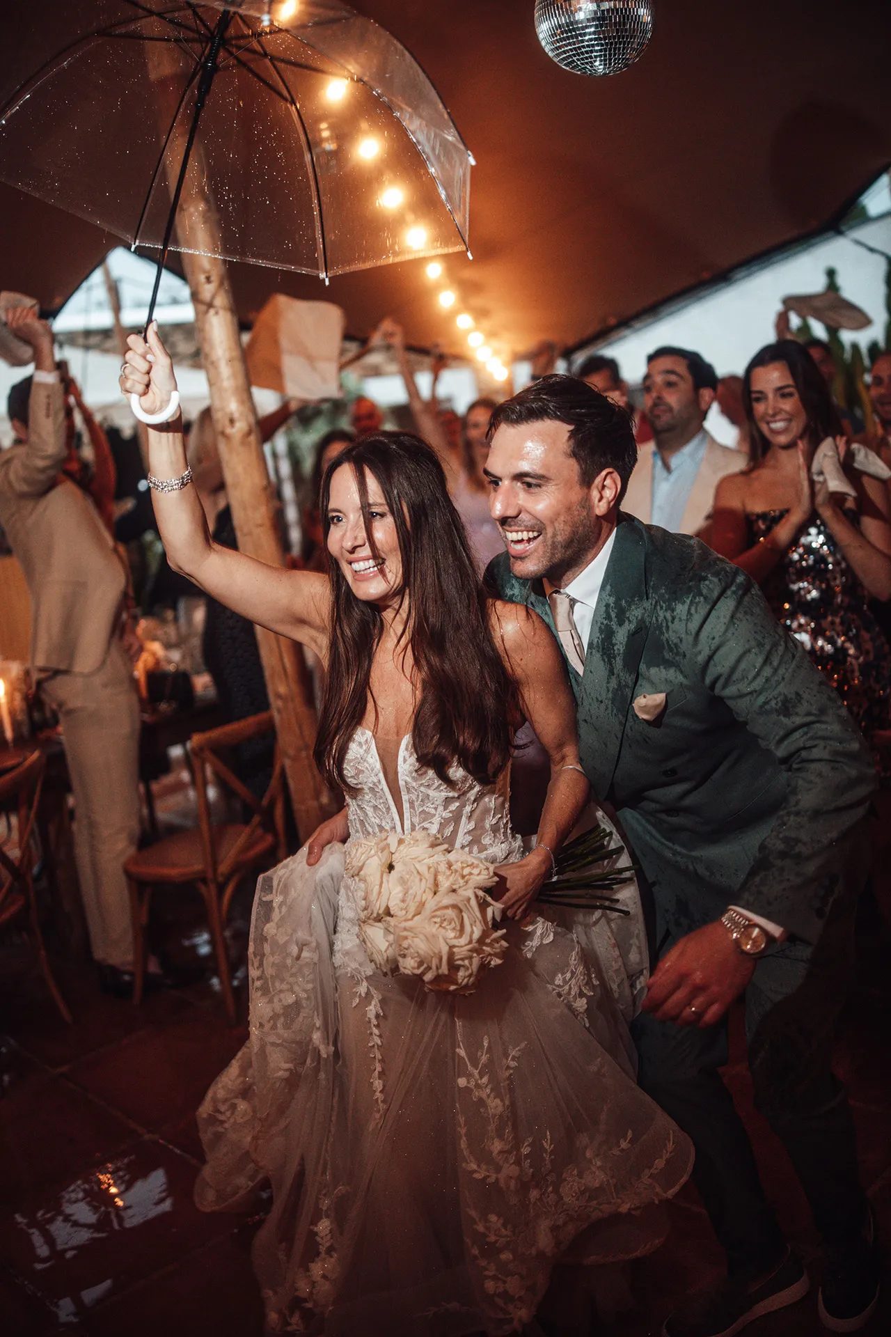 Iako je Ibiza sedmicu ranije pogodila jedna od najgorih oluja u historiji, a kiša i vjetar nisu jenjavali sve do jutra vjenčanja, upravo ta oluja dodala je poseban šarm njihovom danu. Kad se vrijeme razvedrilo, ceremoniju su uspjeli održati u vrtu punom palmi i limunovaca — baš onako kako su sanjali.