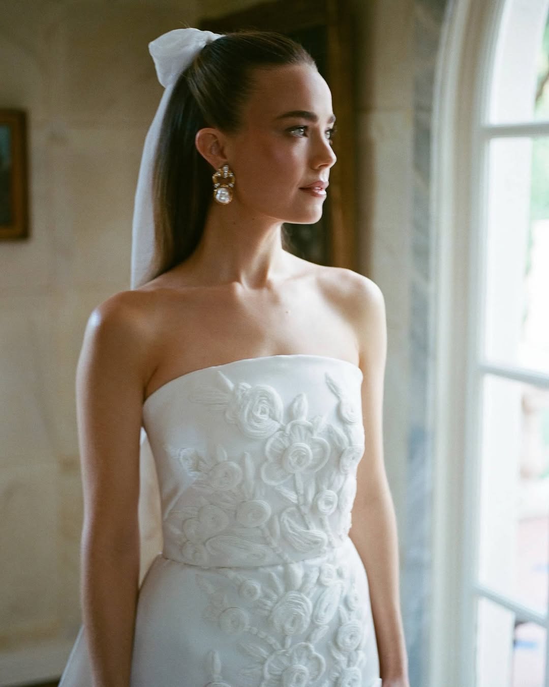 Rebecca je za svoje vjenčanje odabrala klasičnu, elegantnu haljinu s kapuljačom i dugim dugmadima na leđima, uz dijamantske naušnice i narukvicu od XIV Karata te naslijeđeni sat svoje bake.
