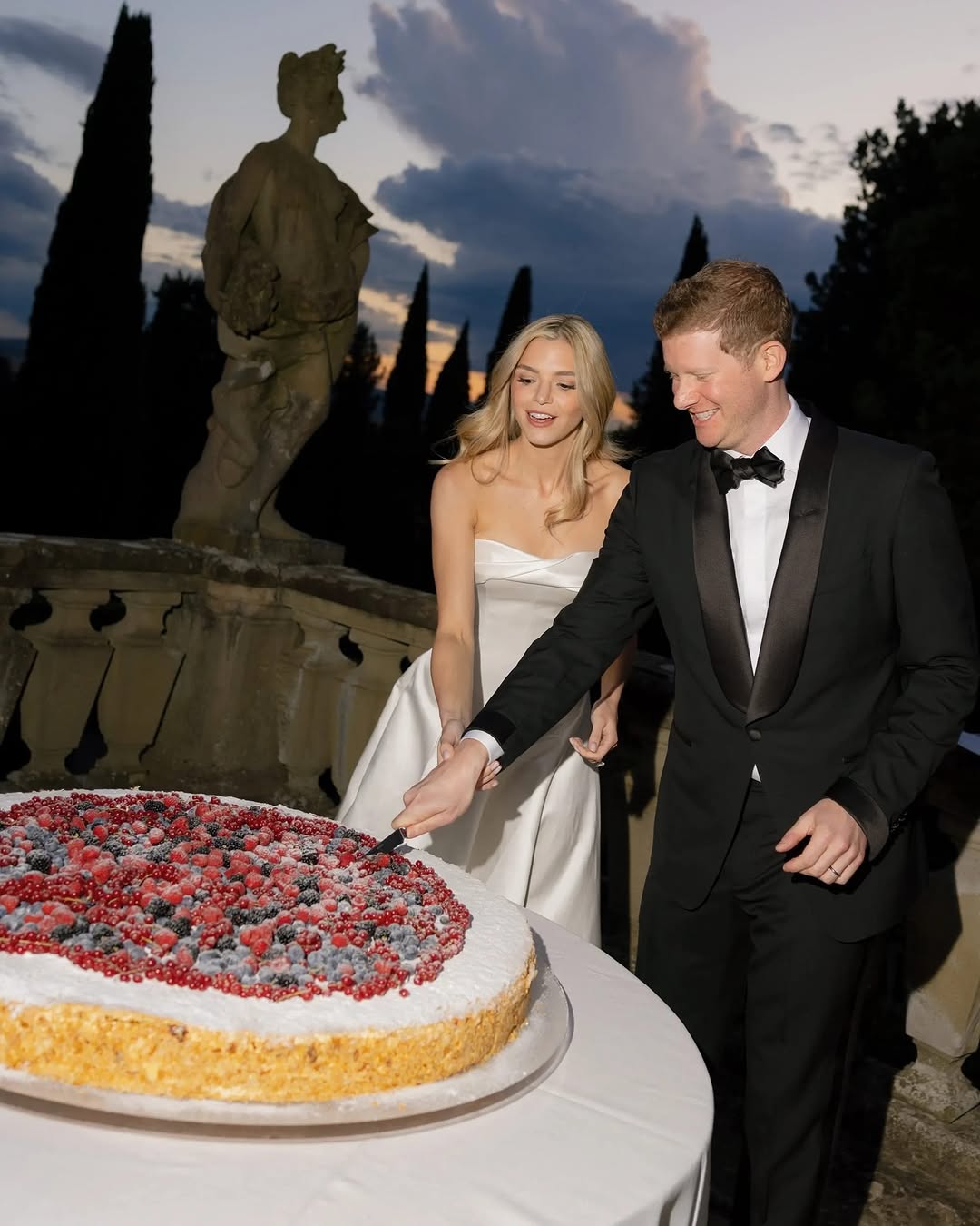 Za vjenčanje su izabrali Firencu — grad koji im je bio važan od samog početka veze. Trodnevno slavlje osmislila je planerica Augusta Cole, a ceremonija i prijem održani su na brežuljcima s pogledom na grad, okruženi vinogradima i starim čempresima.