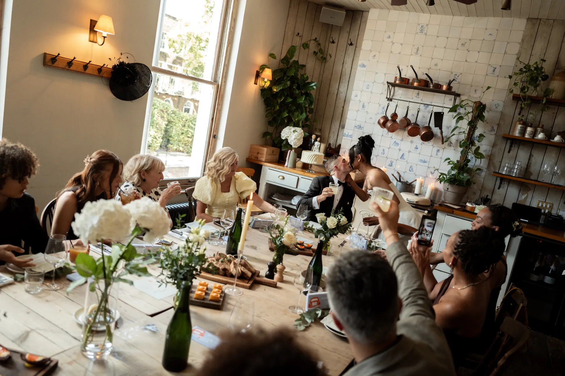 Nakon ceremonije, slavlje se nastavilo u londonskom restoranu The Pig and Butcher uz tradicionalna britanska jela i tortu u duginim bojama.