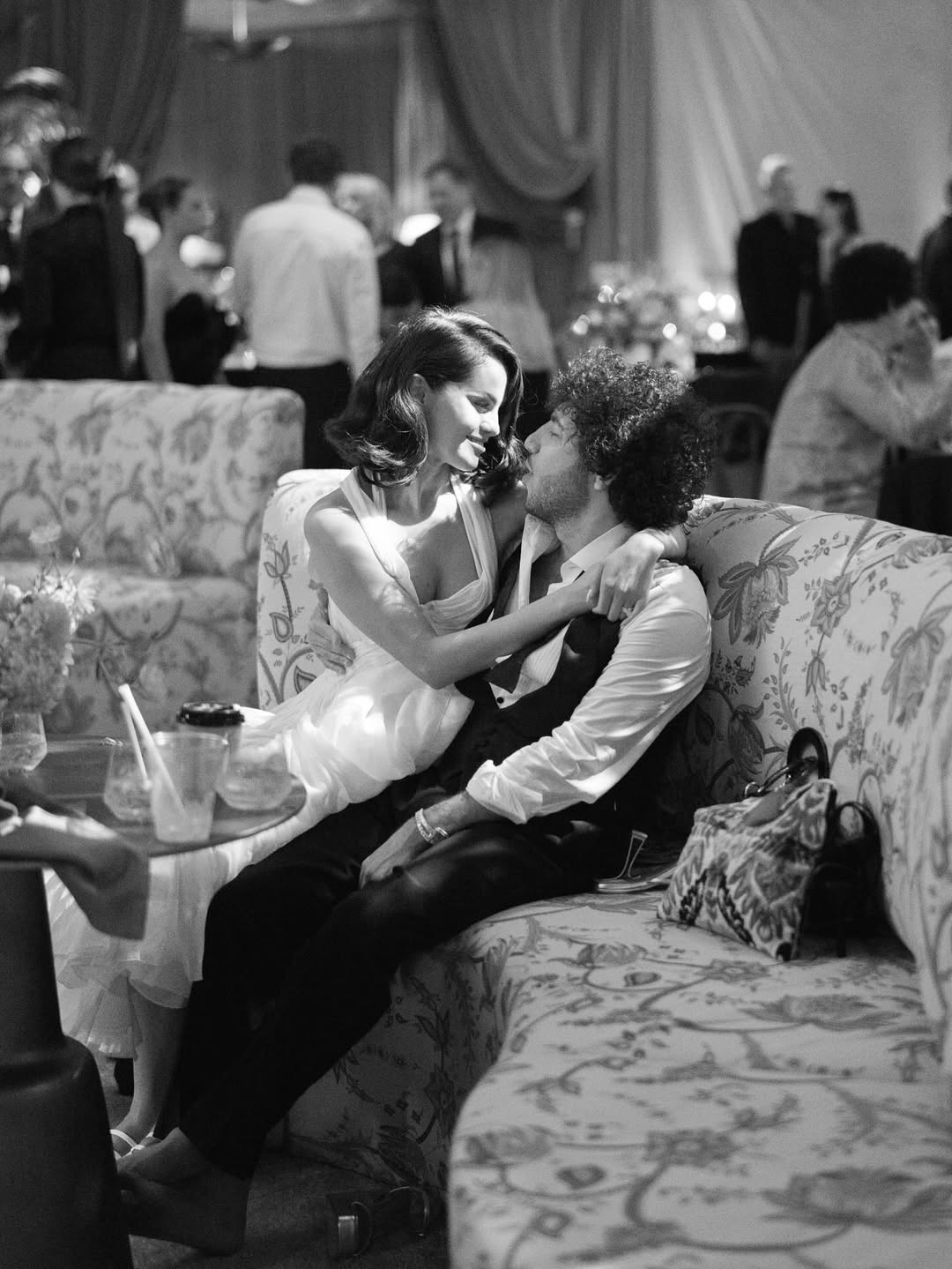 Na slikama se vidi kako ljubi Bennyja Blanca na plesnom podijumu, odjevena u bijelu haljinu inspirisanu vintage stilom, sa dekolteom u obliku srca.