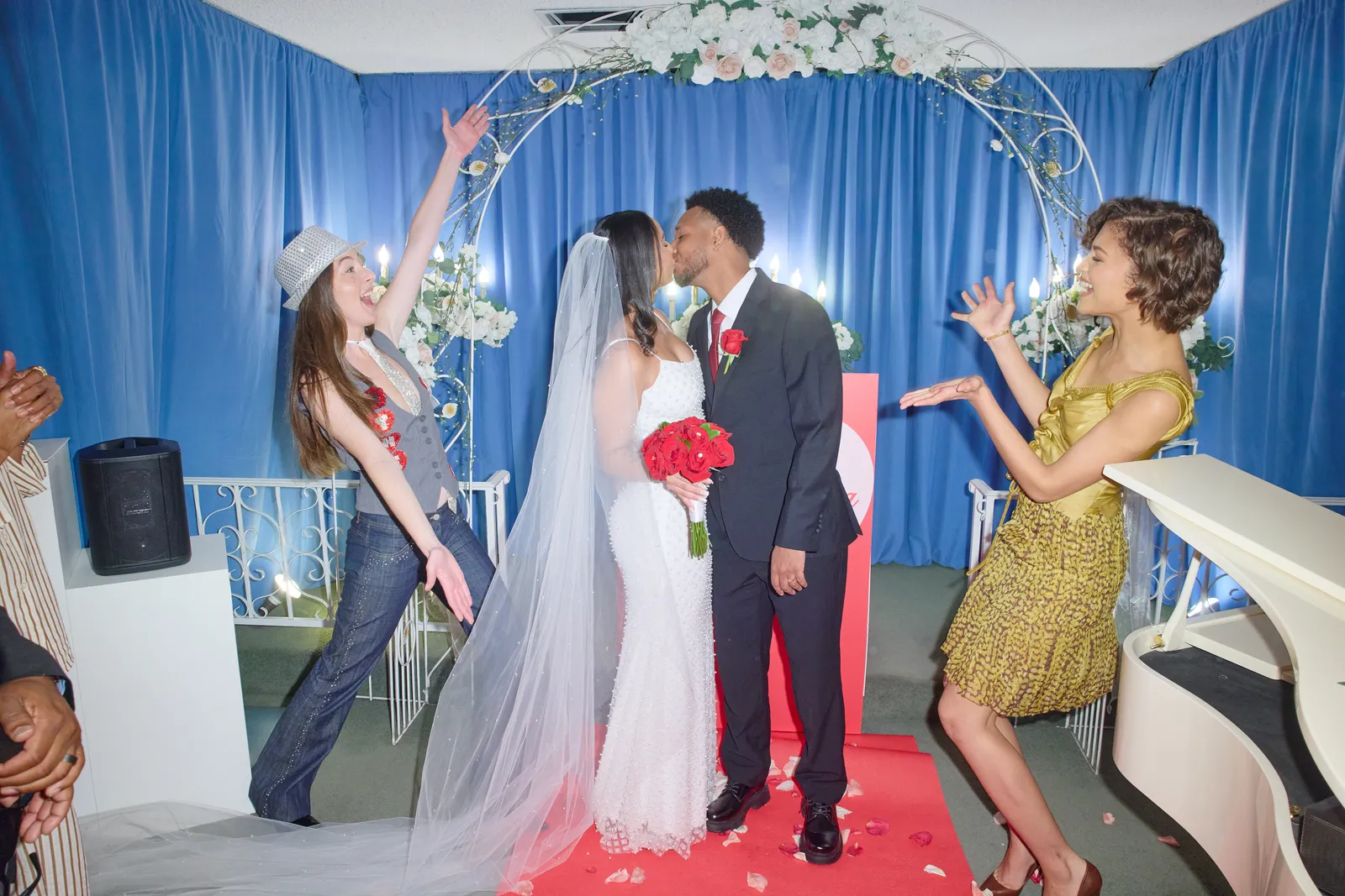 Mladenci koji su se vjenčali su Payton Whitmore i Kadeem Strickland. Ceremonija je započela DJ setom Alane Haim (članice benda Haim i suigračice Zendaye u filmu), koja je gostima zasvirala verziju pjesme "Give Me Everything" od Pitbulla. Kada je mladenka koračala prema oltaru, Alana je pustila "Going To The Chapel Of Love", a tada se pojavila i Zendaya.