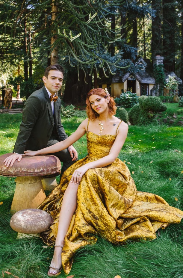 Insprisani filmom Labyrinth, Jimom Hensonom i svime što je "čudno i zeleno", odlučili su se za Nestldown, čarobno imanje u kalifornijskim šumama Santa Cruza, gdje su pod redwood krošnjama, kraj jezera i među vilinskim vrtovima, izrekli svoje zavjete. Ketubu su potpisali upravo u gnomskom vrtu, detalj koji bi neke odbio, a njih je osvojio.