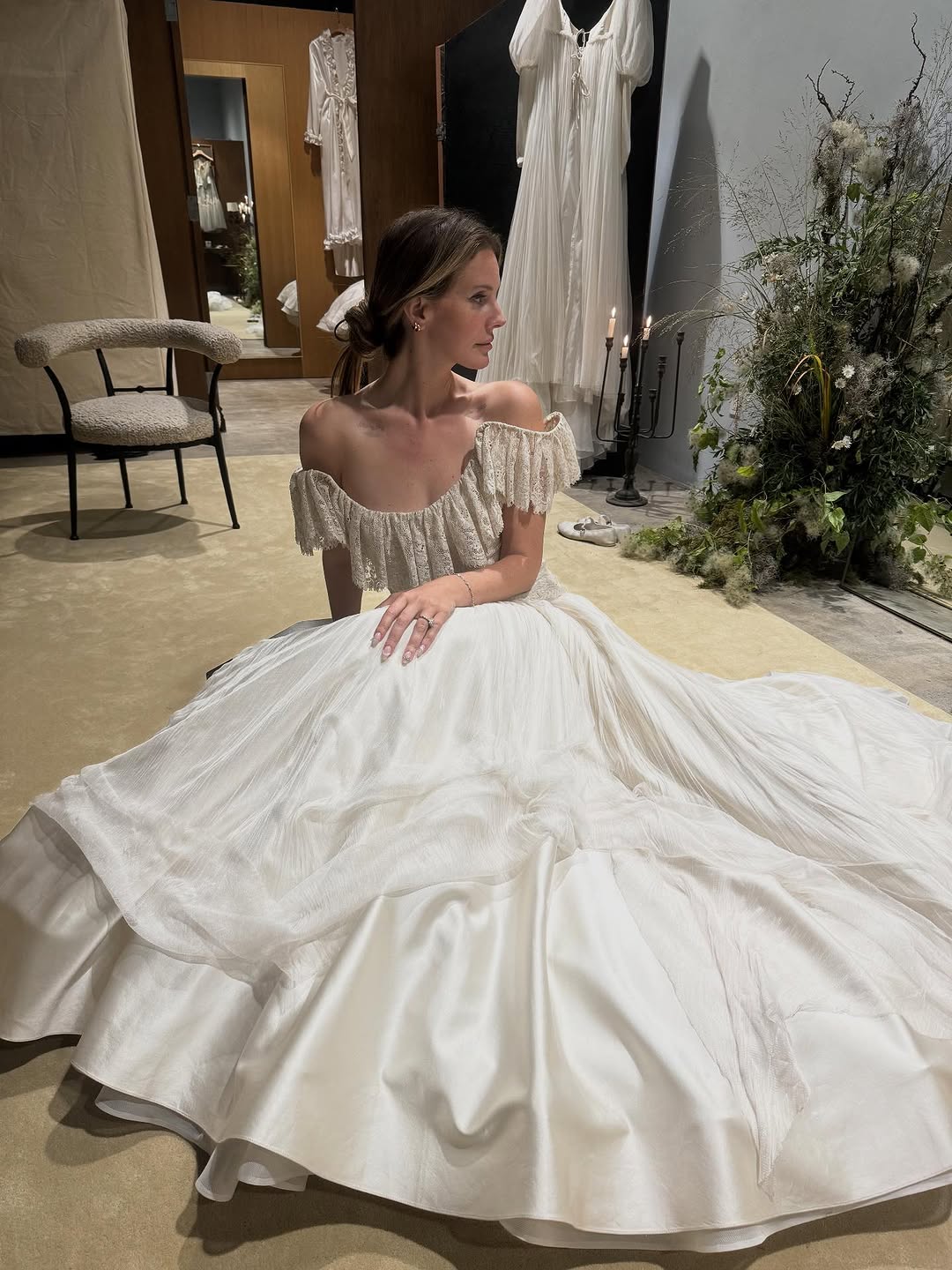 Lana je željela da haljina u potpunosti odražava njen stil, pa su zajedno radile na detaljima. „Provodile smo večeri u showroomu do četiri ujutro, sjedeći na podu i razrađujući ideje,“ kaže Madelyn Wysner, Macyena sestra i izvršna direktorica brenda. „Dodale smo čipku na suknju i male mašnice na naborima – baš u viktorijanskom duhu.“
