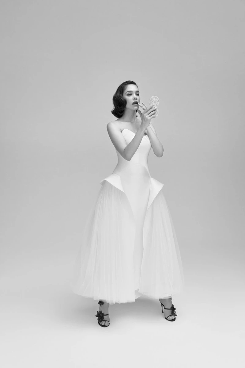 Od luksuznih satena i složenih vezova do svježih silueta koje ističu drapiranje, plisiranje i ručing tehnike, najnovija kolekcija spaja vintage šarm i modernu sofisticiranost, nudeći dozu nostalgije s savremenim osjećajem.