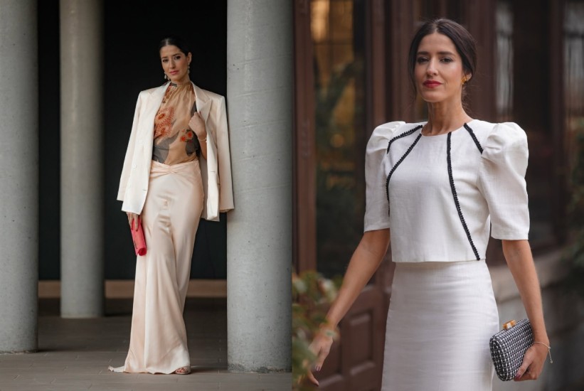 Za one koje preferiraju nježnije tonove, svilene suknje u šampanjac nijansi uparene s floralnim bluzama visokih ovratnika i oversized blejzerima stvaraju ženstven, ali ležeran izgled. Ovaj spoj elegancije i lakoće savršen je za manje ceremonije.