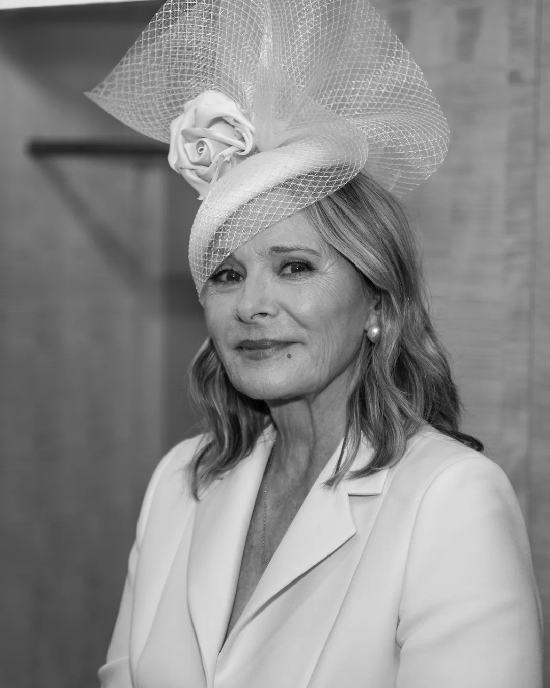 Cattrall je zablistala u bijelom odijelu kuće Dior, krojenom specijalno za nju, koje je kombinirala s finim rukavicama Cornelie James i šeširom izrađenim po mjeri od strane poznatog dizajnera Philipa Treacyja.