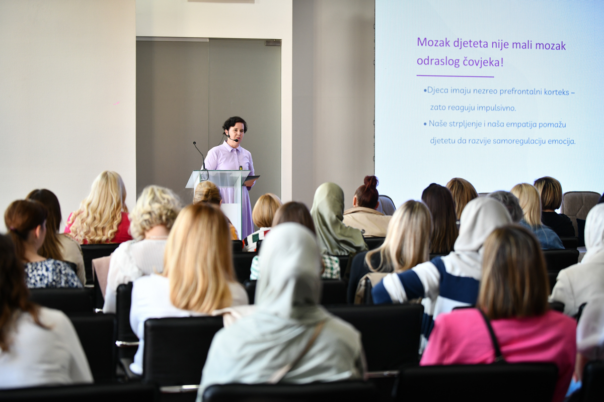 Taj put propitivanja kako reakcije roditelja utiču na razvoj djece nastavila je porodična savjetnica Mina Omerović kroz poučno predavanje o strpljenju i empatiji. Ona je objasnila da emocije treba prihvatiti kao nešto dobro, produktivno i ljudsko, kako bi se sa djecom moglo racionalno komunicirati.